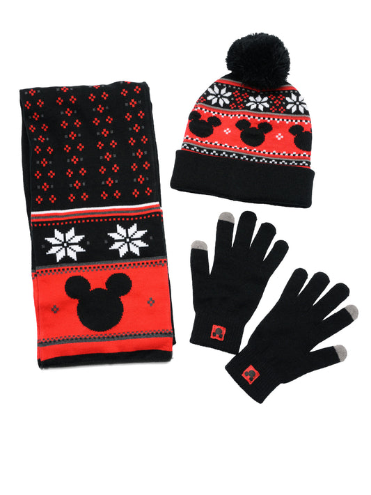Disney Mickey Mouse Knit Beanie Hat, Gloves & Scarf 3-Piece Adult Winter Set