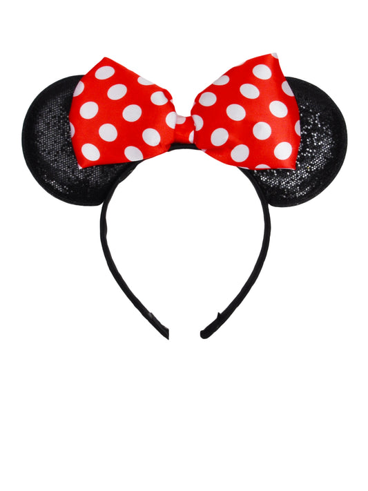 Girls Minnie Mouse Headband with Ears & Bow Red