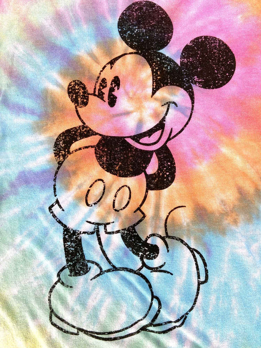 Girls Mickey Mouse Tie Dye T-Shirt w/Cap Sleeves Slim Fit Multi-Color