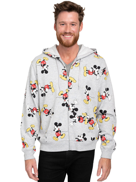 Disney Mens Mickey Mouse Zip Up Hoodie All-Over Print Sweatshirt Heather Gray
