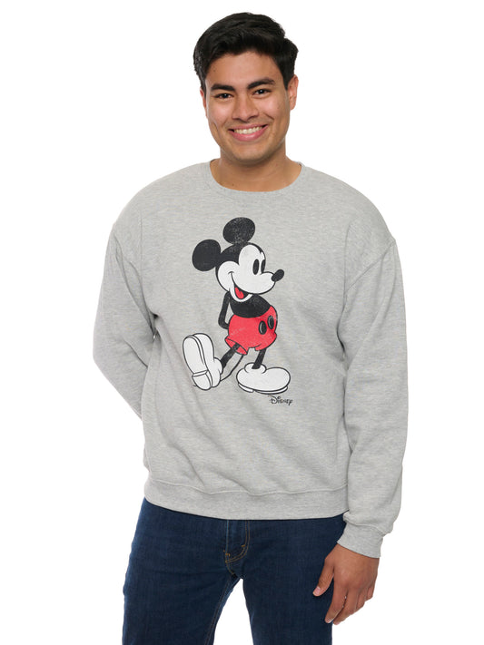 Men's Disney Mickey Mouse Crew Neck Sweatshirt Gray Distressed Classic Print