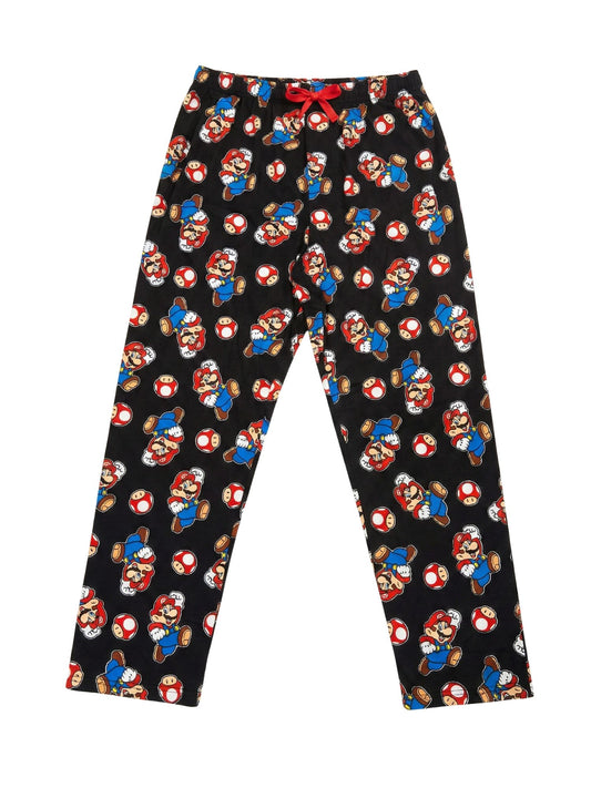 Nintendo Men's Super Mario & Mushroom All-Over Print Pajama Sleep Pants, Black