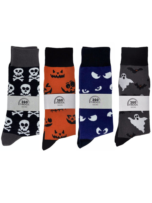 Men's Halloween Socks Jack O' Lanterns Bats Spooky Eyes Skulls 4-Pair Set