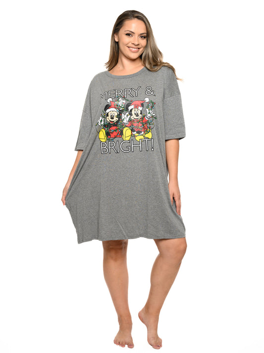 Women's Disney Christmas Mickey & Minnie Mouse Sleep Shirt Pajama Dorm Shirt