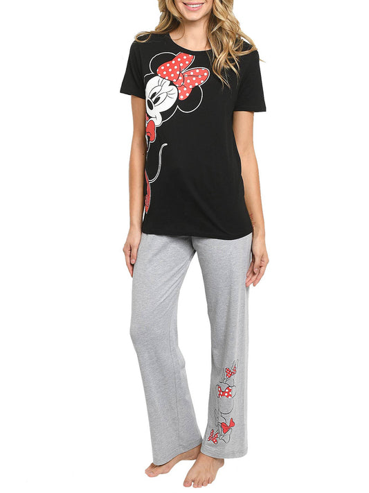 Disney Women's Minnie Mouse Leaning Bows Lounge Pajamas Gray 2 Piece Set