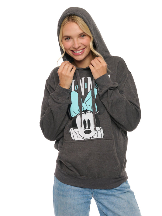 Disney Women's Minnie Mouse Hoodie Sweatshirt Pullover Gray Blue