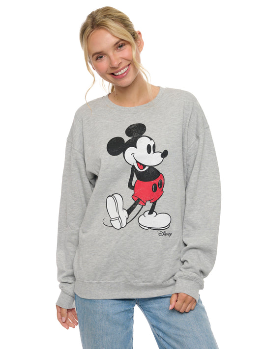 Women's Mickey Mouse Sweatshirt Crew Neck Gray Classic Distressed Print Disney