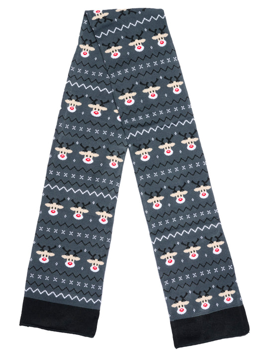 Mens Womens Christmas Reindeer Knit Scarf 70" Fair Isle Double Sided Print