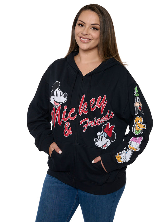 Women's Plus Size Disney Mickey & Friends Hoodie Sweatshirt Black Zip Up