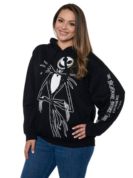 Womens Plus Size Jack Skellington Hoodie Pullover Nightmare Before Christmas