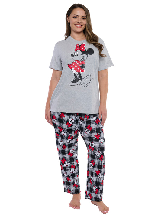 Women's Plus Minnie Mouse Gray T-Shirt & Pants 2-Piece Pajama Set Sleepwear