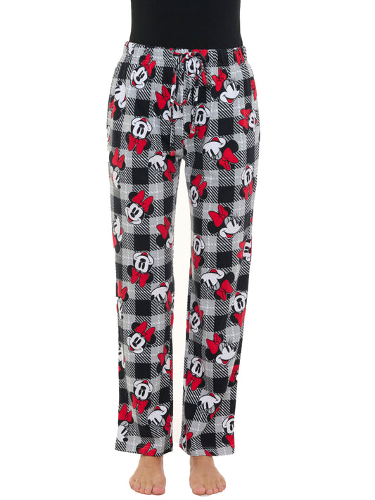 Womens Disney Minnie Mouse Pajama Pants Loungewear Plaid Red Black Disney