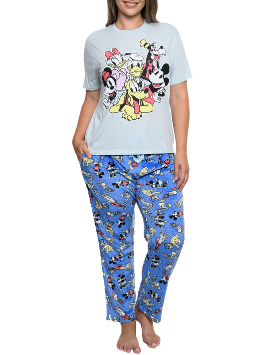 Disney Mickey Mouse & Friends T-Shirt & Plush Pant Pajama Women's Plus Size Set