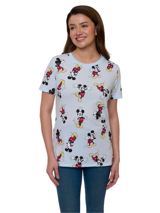 Disney Mickey Mouse Expressions T-Shirt All-Over Print Blue Women