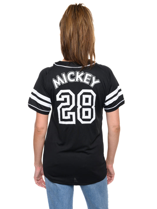 Disney Mickey Mouse Baseball Jersey Black Button Down Shirt Women's