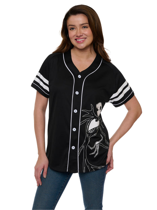Women's Jack Skellington Baseball Jersey Shirt Nightmare Before Christmas Black