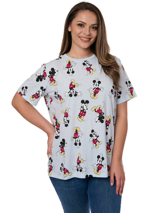 Women's Plus Size Disney Mickey Mouse T-Shirt All-Over Print Blue Cotton Poly