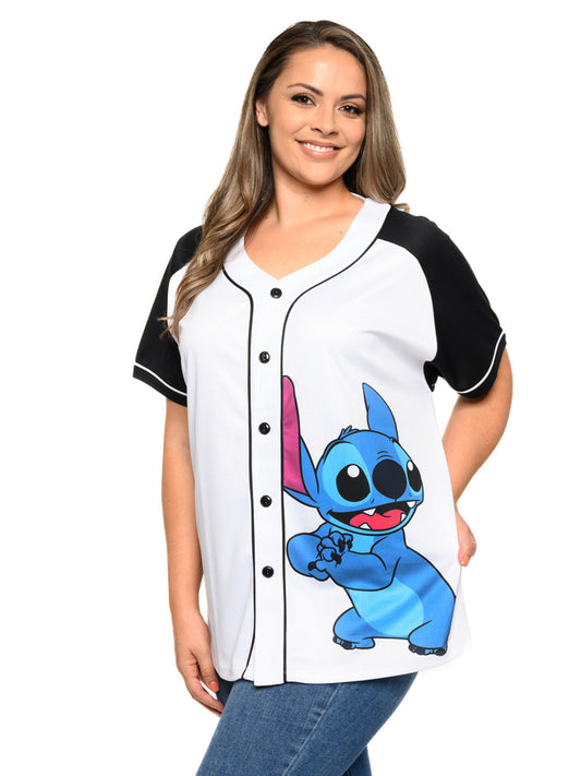 Disney Stitch Baseball Jersey Button Down Shirt White Women's Plus Size