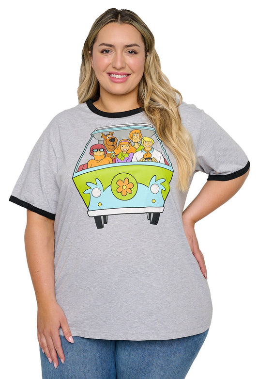 Women's Plus Size Scooby-Doo T-Shirt Ringer Mystery Machine Heather Gray