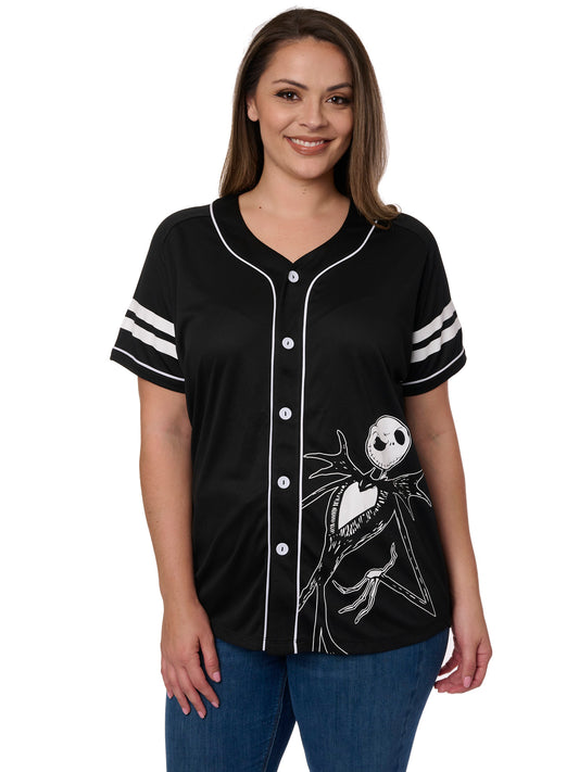 Women's Plus Skellington Baseball Jersey Shirt Button Nightmare Before Christmas
