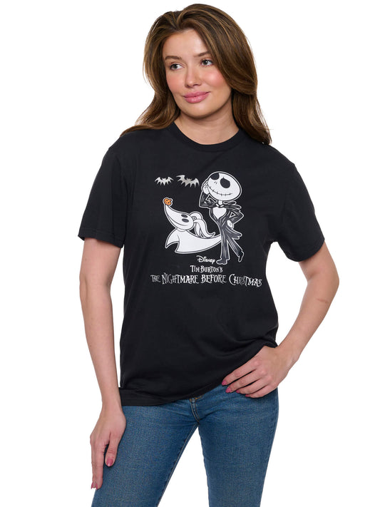 Women's Disney Jack Skellington and Zero Short Sleeve T-Shirt Foil Details Black