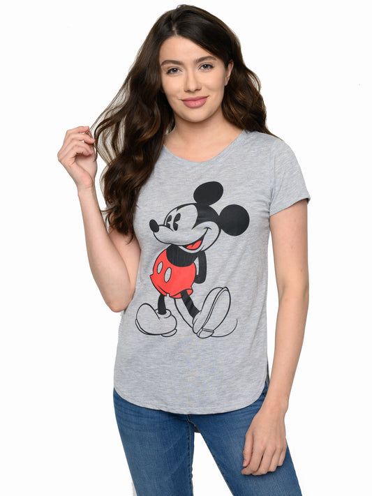 Womens Disney Classic Mickey Mouse Hi-Low Hem T-Shirt Heather Gray Junior Sizes