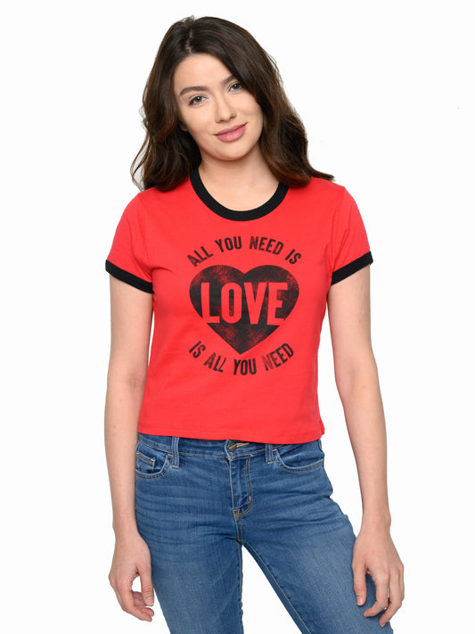 Juniors Beatles All You Need Is Love Band T-Shirt Halloween Tee Black Red
