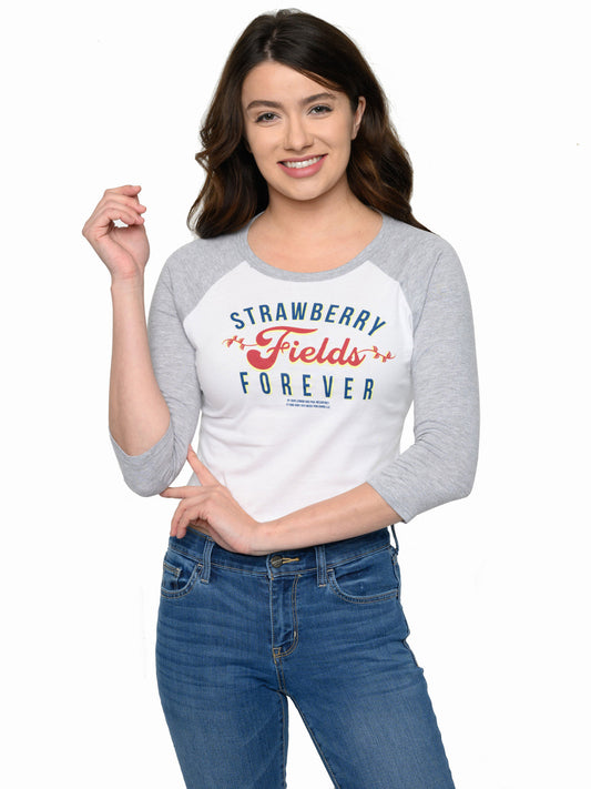 Beatles Strawberry Fields Forever White Raglan Crop Top Juniors T-Shirt