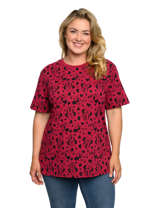 Women's Plus Size Minnie Mouse T-Shirt Hearts All-Over Hearts Print Red Tee