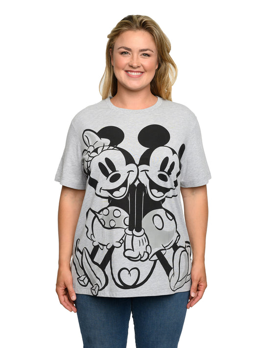 Mickey & Minnie Mouse T-Shirt Gray Back To Back Women's Plus Size Disney