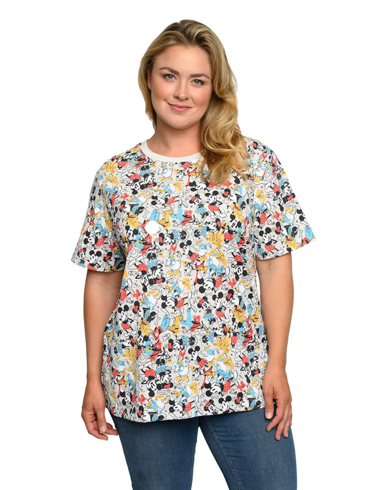 Womens Plus Size Mickey Minnie Mouse Pluto Goofy T-Shirt Disney All-Over Print