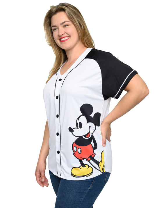 Women's Plus Size Disney Mickey Mouse Baseball Jersey 28 Shirt White Button Down