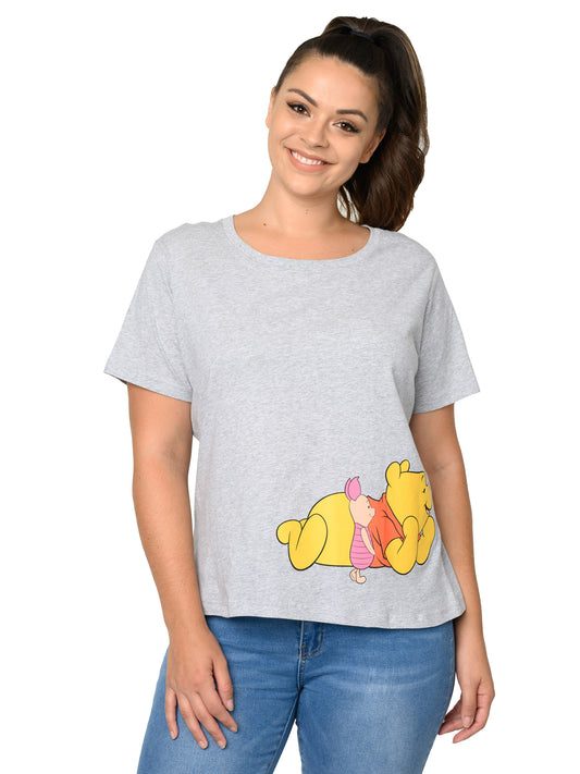 Winnie The Pooh Cropped T-Shirt Piglet Eeyore Tigger Women's Plus Size Gray