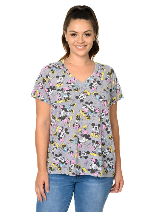 Disney Minnie Mouse T-Shirt Short Sleeve Gray Women's & Women's Plus
